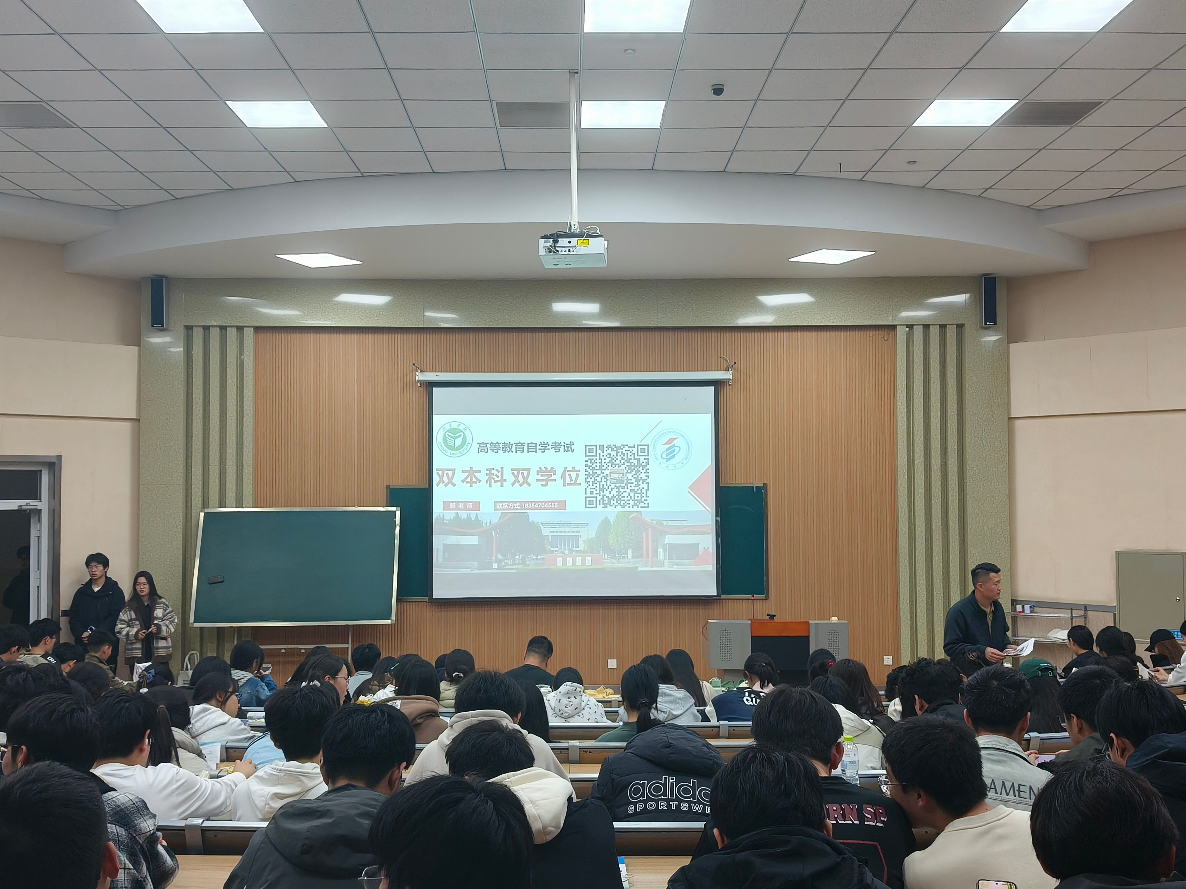 会上,各机构负责人依次分享核心内容。自考助学板块强调双学历双学位对考公考编的优势;考研板块详解学科规划、师资力量及督学模式,指导学生查询目标院校考试科目;公考板块涵盖公务员、事业编等各类公职考试介绍及选调条件说明;韩国留学板块突出距离、学费、待遇等核心优势;计算机培训板块聚焦二级证书的重要性与教学模式;无人机培训板块则介绍了其在多领域的应用场景、低门槛高收入的特点及“培训—考证—接单” 全链路培训体系。
