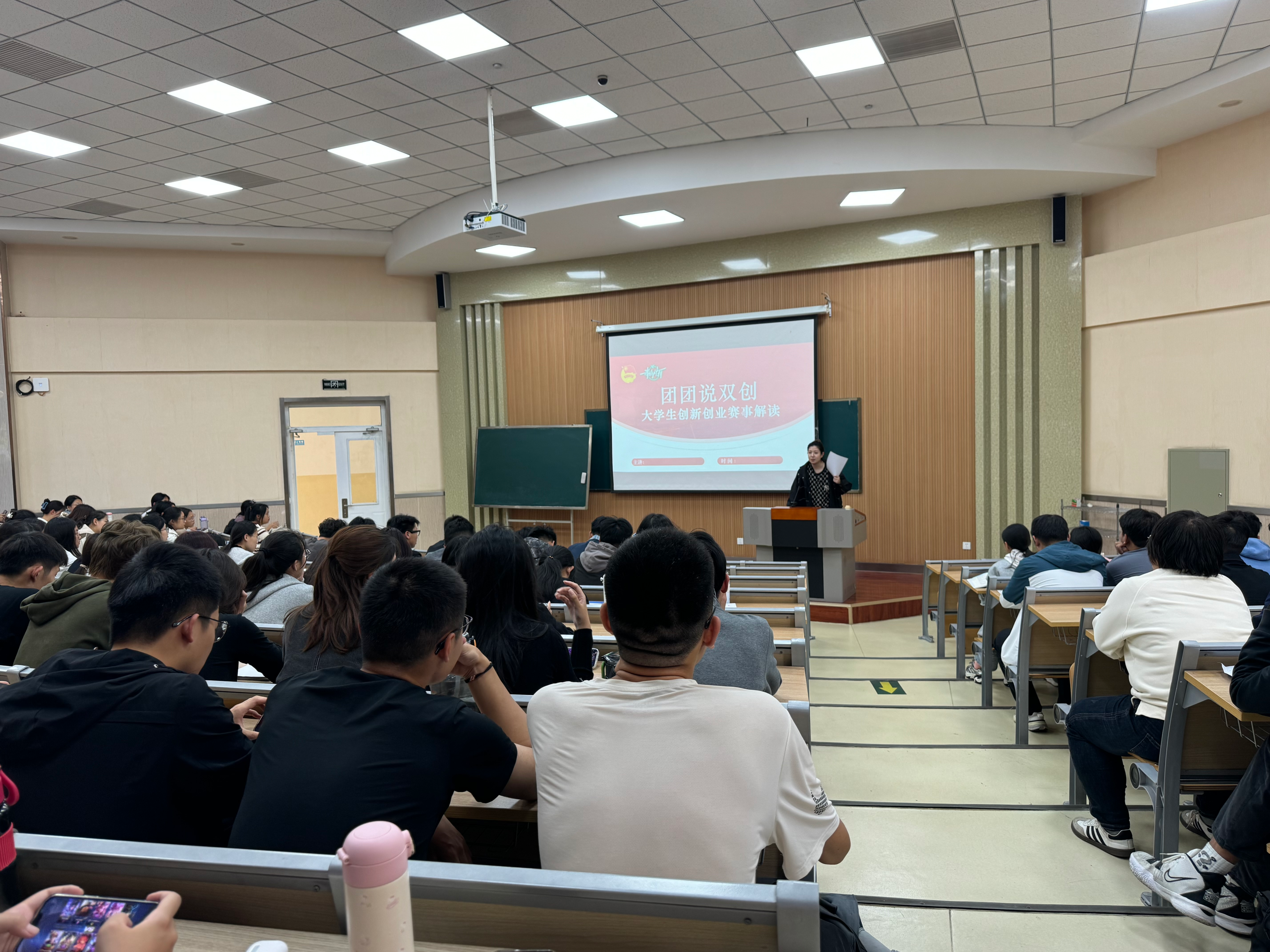 为落实“青鸟计划·技能提升季”工作要求,充分调动师生参加大学生创新创业赛事的积极性和热情,加强双创教育宣传和落地,10月9日,伟德源自英国始于1946“团团说双创”活动在4号楼B101教室开讲。学院团委副书记陈轶洋以“大学生创新创业赛事解读”为主题,为2024级全体新生授课。